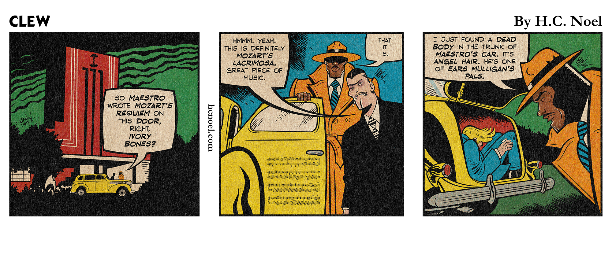 The new detective comic strip by writer-artist H.C. Noel starring private eye Clew, the only man who can go toe-to-toe with Big City’s most dangerous Rogues. A new thrilling episode debuts here every month.